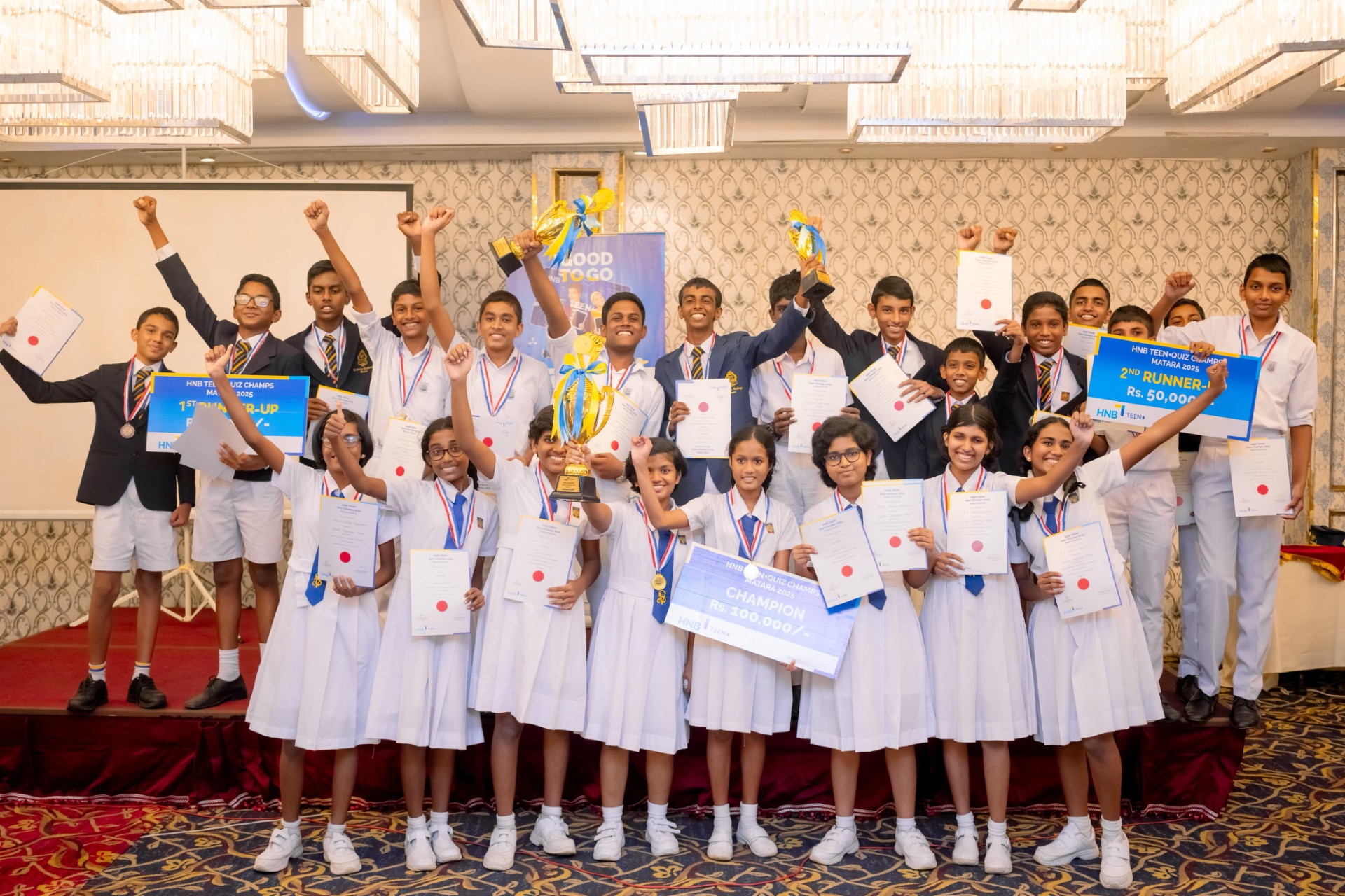 “මෙම වැඩසටහන තුළින් ශ්රී ලංකාවේ අධ්යාපනය සඳහා අපගේ කැපවීම මැනවින් පෙන්නුම් කරනවා. Teen+ Quiz Champs සිසුන්ට අධ්යයන කටයුතු සඳහා පමණක් නොව, අනාගතයට වැදගත් වන සන්නිවේදනය, විවේචනාත්මක චින්තනය සහ කණ්ඩායම් හැඟීම වැනි කුසලතා වැඩිදියුණු කිරීමට ද උපකාරී වනවා.” යනුවෙන් HNB උප සභාපති – තැන්පතු විරංග ගමගේ මහතා සඳහන් කළේය.