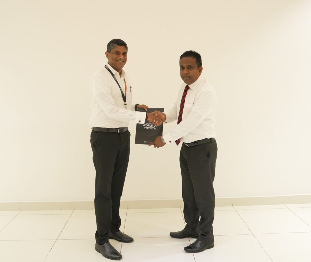 ජනශක්ති ෆිනෑන්ස් පීඑල්සී සමාගමේ වැඩබලන ප්රධාන විධායක නිලධාරී සිදම්බරම් ශ්රී ගණේන්ද්රන් මහතා (වමේ) සහ ටොයොටා ලංකා සමාගමේ කළමනාකාර අධ්යක්ෂ/ ප්රධාන විධායක නිලධාරී මනෝහර අතුකෝරල මහතා (දකුණේ) අවබෝධතා ගිවිසුම අත්සන් කිරීමෙන් අනතුරුව