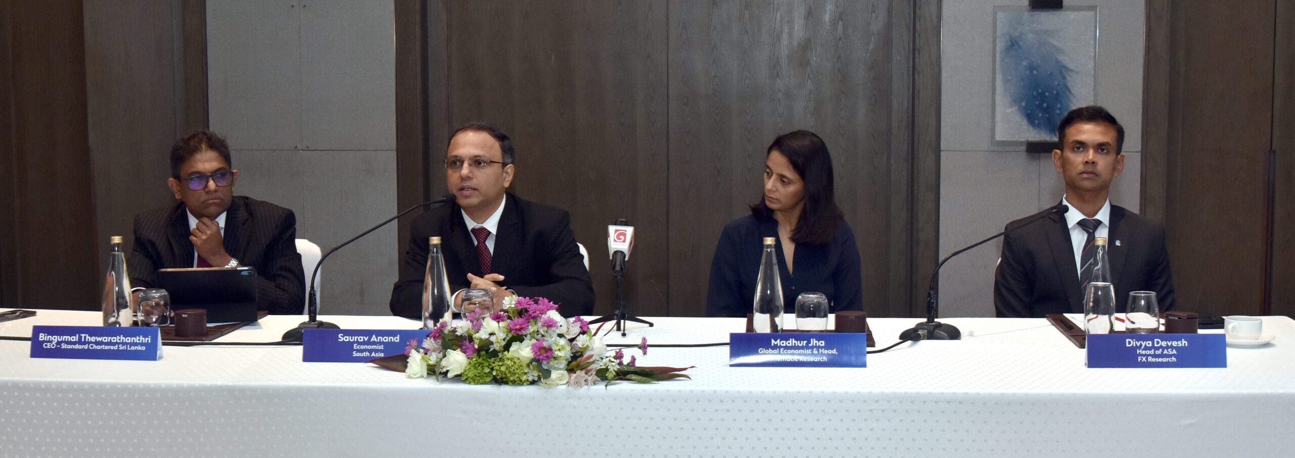 මෙම සමුළුවේදී ස්ටෑන්ඩර්ඩ් චාර්ටඩ් බැංකුවේ ගෝලීය ආර්ථික විද්යාඥ මධූර් ජා, දකුණු ආසියානු කලාපීය ආර්ථික විද්යාඥ සෞරව් ආනන්ද් සහ විදේශ විනිමය පිළිබඳ පර්යේෂණ ප්රධානී දිව්යා දේවේෂ් යන මහත්ම මහත්මීන්, ලෝක වෙළෙඳාම සහ මුදල් ඒකකවල හැසිරීම් පිළිබඳව අදහස් දැක්වූහ. විශේෂයෙන්ම ශ්රී ලංකාව ලබාගෙන ඇති ආර්ථික ස්ථාවරත්වය සහ ඉදිරියටත් ප්රතිසංස්කරණ පවත්වාගෙන යාමේ වැදගත්කම පිළිබඳව ඔවුන් මෙහිදී කරුණු පැහැදිලි කළහ.