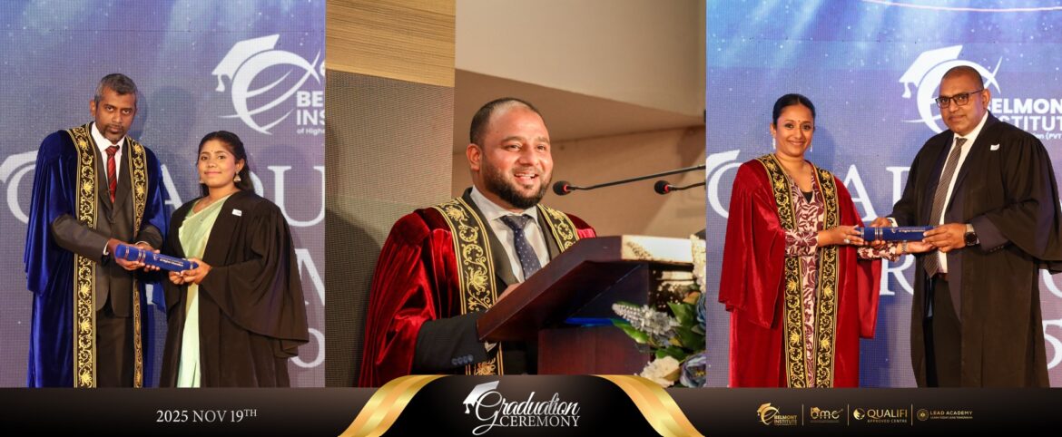 Belmont උසස් අධ්යාපන ආයතනයේ 2025 වසරේ උපාධි ප්රදානෝත්සවය කොළඹ, වෝටර්ස් එජ් පරිශ්රයේදී පසුගිය දා උත්කර්ෂවත් අයුරින් පැවැත්විණි. සිය අධ්යයන හා වෘත්තීය පාඨමාලා සාර්ථකව නිම කළ සිසු සිසුවියන්ගේ කැපවීම සහ දක්ෂතාවය ඇගයීම වෙනුවෙන් මෙම උත්සවය සංවිධානය කර තිබුණි. වත්මන් තරඟකාරී වෘත්තීය ලෝකයට අවශ්ය ප්රායෝගික කුසලතා සහ සදාචාරාත්මක පදනම සහිත, ගෝලීය ප්රමිතීන්ට අනුකූල වෘත්තීය අධ්යාපනයක් ලබා දීම සඳහා වන Belmont අධ්යාපන ආයතනයේ මෙහෙවර මෙහිදී මැනවින් පිළිබිඹු විය.